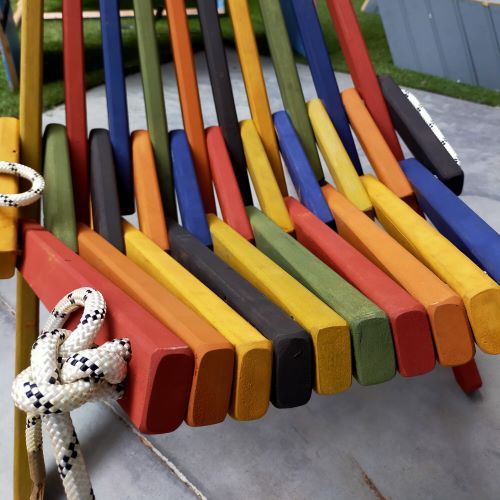 L’Empreinte du Bois vous propose une ossature en chêne ou en okoumé de seconde main, accompagnée de cordes d’escalade de réemploi pour le maintient.