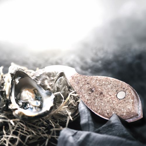 Né au pays de l’ostréiculture, il est le premier couteau à huîtres éco-conçu, fabriqué à partir de coquilles d’huîtres recyclées !